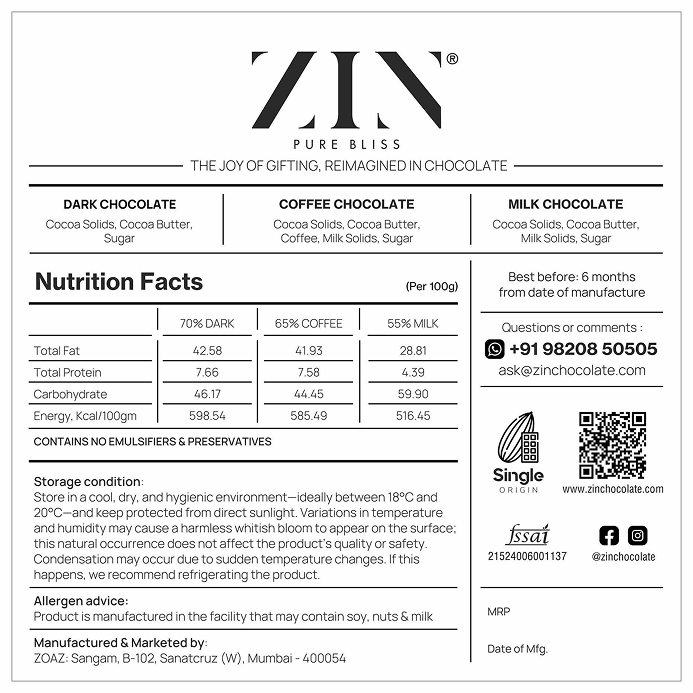 ZIN chocolates are best enjoyed at room temperature (around 20°C).
